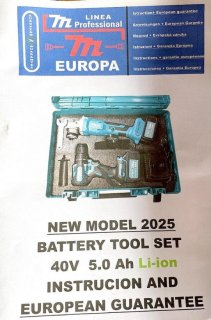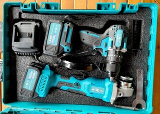 Prof. sada nářadí. Kufřík obsahuje elektrickou akumulátorovou vrtačku (rovněž šroubovák), akumulátorovou úhlovou brusku (rozbrušovačku) + 2 baterie (40V, střídavý proud = velká výdrž a kroutící moment). nabíječka. Sada je úplně nová, nepoužitá, v záruce (exponát z výstavy). Pro mě nevhodný dárek – absolutně nevyužiji.