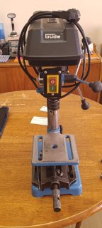 Prodám: zachovalou, plně funkční,stojanovou vrtačku Güde, GTB 13/355,Přípojka 220 Volt~50 Hz,Sklíčidlo1 - 13 mm,Otáčky vřetena 580 - 2650 ot./min,5.rychlosti.Dám k tomu i svěrák. Cena 2500-kč.tel.737297066
